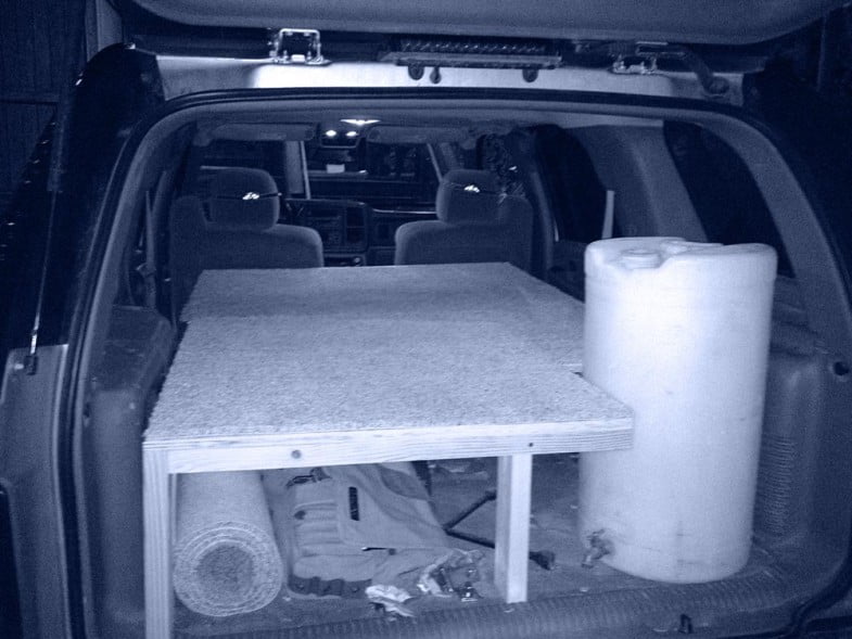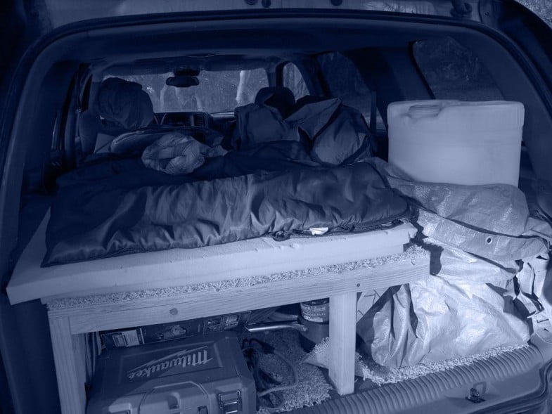 Sleeping platform in studio parking lot, NV